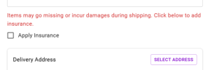 Similar to other large carriers, we have a standard $100 insurance coverage on missing and eligible damaged items. For any additional insurance coverage, we have added a check box on our delivery request form.