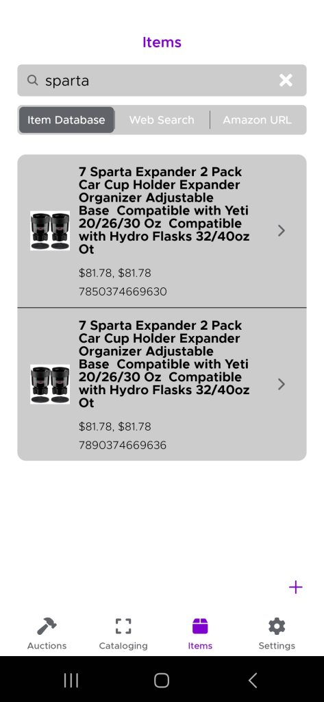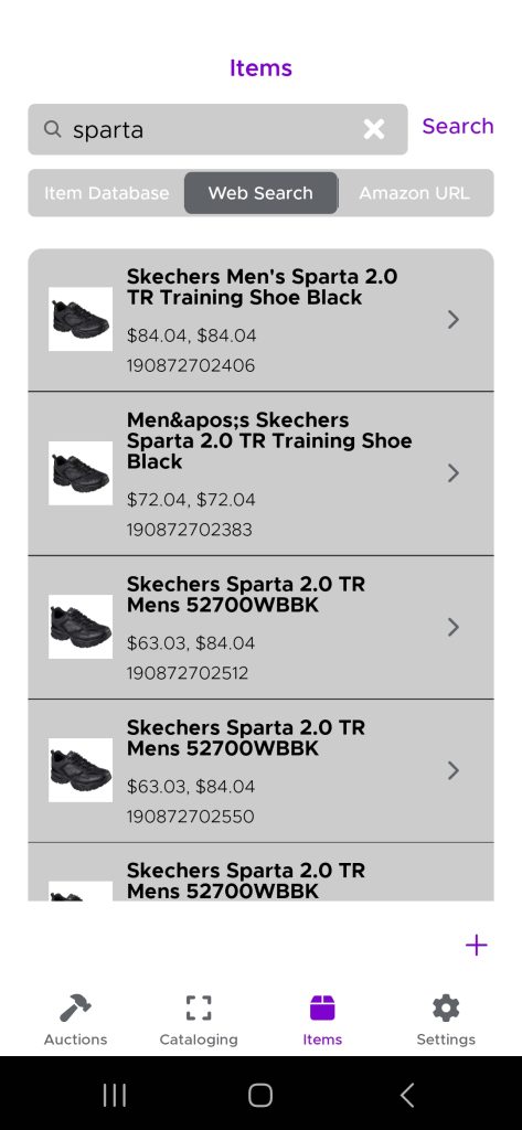 If the item is in the general item catalog, select ‘Items’ from the bottom toolbar. Then select ‘Item Database’ and start typing the some details on what you are looking for into the search bar.